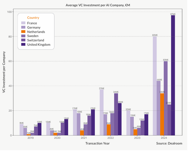 Gemiddelde venture capitalist-investering per AI-bedrijf: